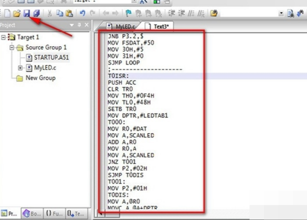 1、首先打开Keil C51软件,点击选择-新建一个空白文档,将程序源码复制到空白文档中。