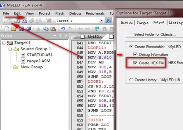 7、切换到,点击选中,编译成功后即可生成.hex文件。