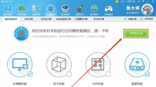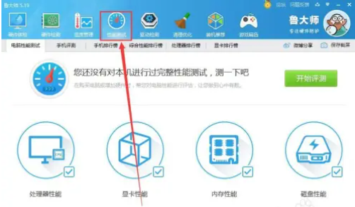 在鲁大师主界面中,找到并点击选项,进入性能测试页面。