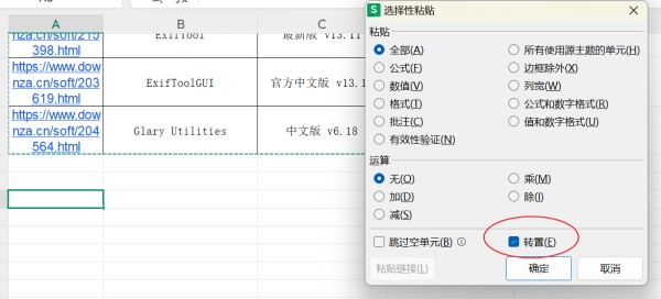 4.单击鼠标右键,在弹出的菜单中选择“粘贴选项”中的“转置”(或使用快捷键Ctrl+V后点击“转置”图标)。