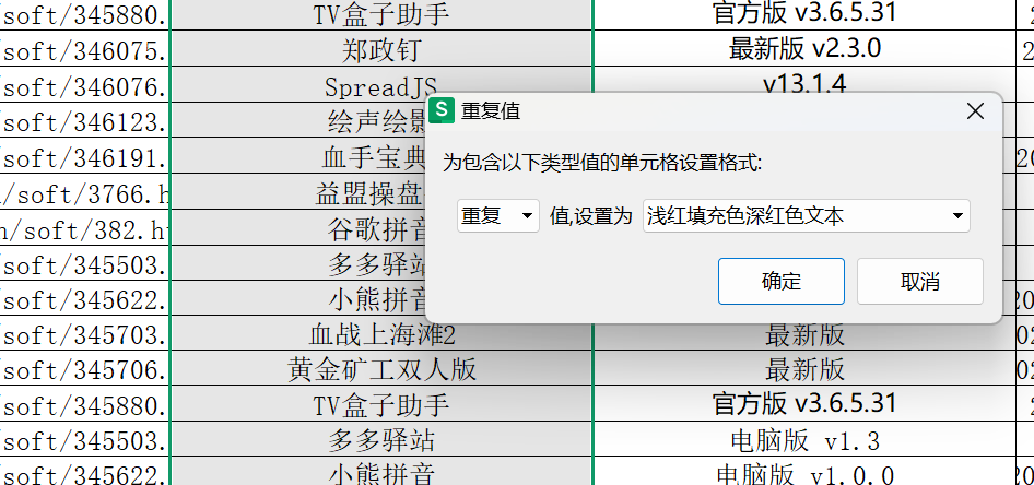 4.在弹出的对话框中,设置显示规则(如选择“重复项”),点击“确定”。