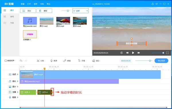 如果需要将长字幕分割成多个部分,可以使用EV剪辑的分割工具,将字幕文件进行分割,以便更精准地控制每个字幕片段的显示时间。