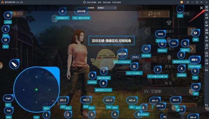 步骤2:游戏启动后,点击模拟器界面右侧的工具栏中的按键图标(类似键盘的形状)进入按键配置界面。或者,你也可以直接按下F12键查看雷电模拟器的默认按键配置。