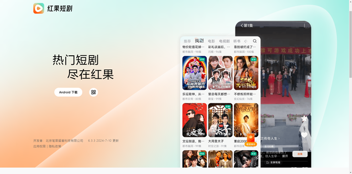 红果短剧是一款专注于2分钟内竖屏短剧的移动应用,由北京笔墨留香科技有限公司开发,该公司是抖音集团的全资子公司。这款应用以其免费内容和多样化的短剧类型迅速吸引了大量用户,包括都市热血、甜宠言情、赘婿逆袭等多种题材。