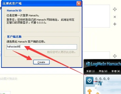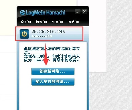 5.创建后,Hamachi会分配给您一个IP地址,并在主界面上显示。