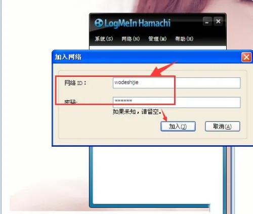 8.请记住您设置的网络ID和密码,并告知您想要一起联机的朋友。您的朋友也需要安装Hamachi并启动它。