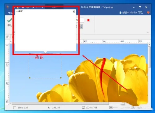 6.创建文本框:使用鼠标在图片上拖动,创建一个文本框。