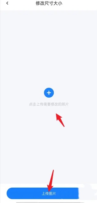 3.进入修改尺寸大小的设置页面,点击“上传图片”按钮。