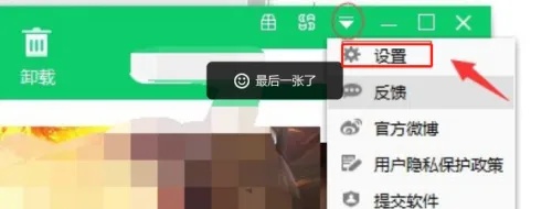 5.使用快捷方式访问设置:或者,通过点击360软件管家界面上方的“倒三角”图标,选择“设置”,同样可以打开设置界面。