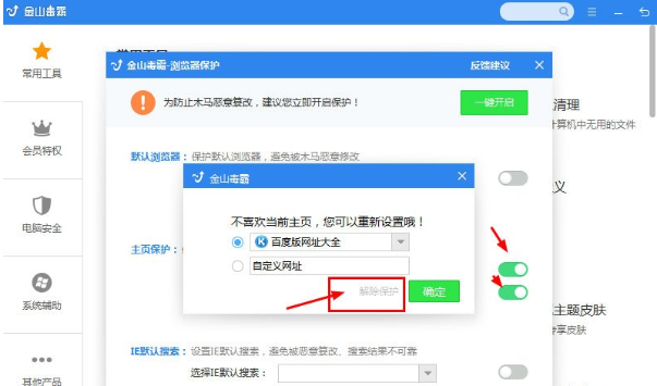 金山毒霸怎么解除主页锁定