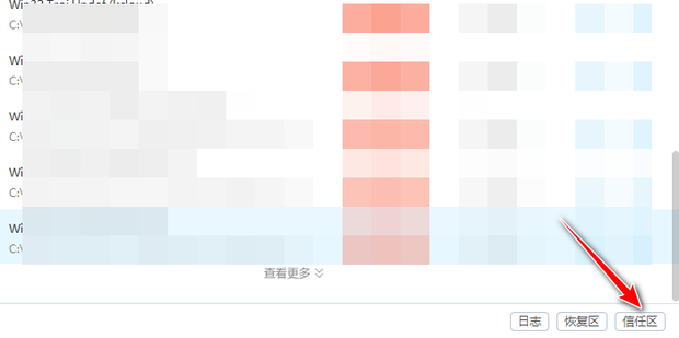 3、查杀结束后,点击右下角的信任区,如下图所示。