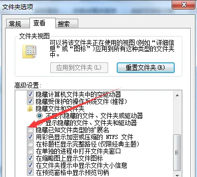 取消勾选"隐藏已知文件类型的扩展名"选项,然后点击"确定"或"应用"保存设置。