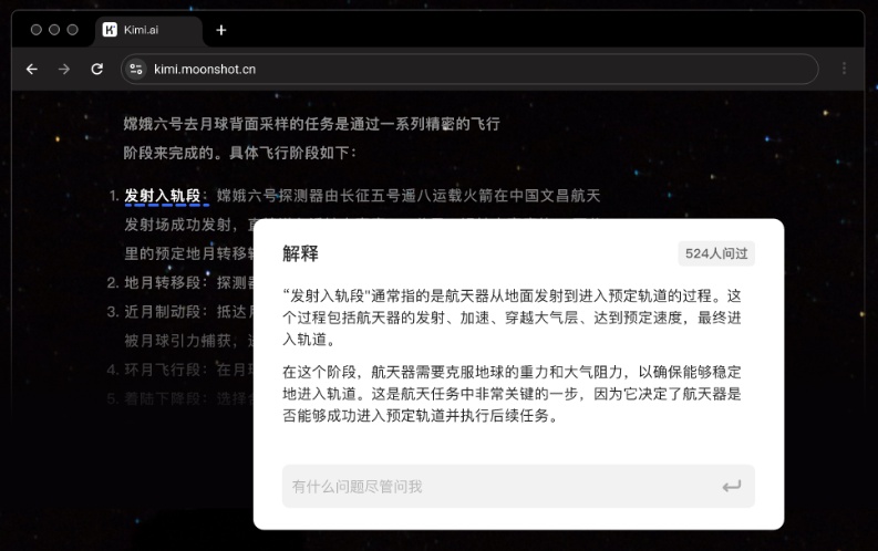 Kimi浏览器插件集成了“点问笔”与“总结器”两大核心功能,旨在解决用户在阅读过程中遇到的各种难题。其中,“点问笔”功能尤为引人注目,用户只需简单框选网页中的疑问文字,Kimi便能迅速提供上下文相关的解释和答案,无论是专业术语的查询还是外文报道的摘要总结,都能轻松应对。