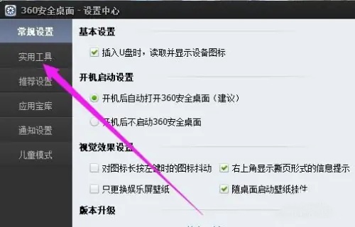 4.在“实用工具”页面,寻找并勾选“主页防护”部分的“启用360安全网址导航”选项,完成设置。
