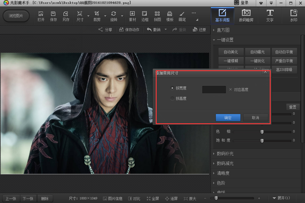 2.在设置区域,您可以根据实际需求选择或添加常用的图片尺寸。如果您需要自定义尺寸,可以在框中输入具体的宽度和高度数值,然后点击按钮保存您的设置。这样,下次使用时就可以快速选择到您所添加的常用尺寸了。