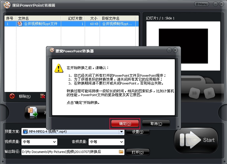 4.设置输出文件的保存路径,然后点击"转换"按钮。转换完成后,背景音乐将成功添加到PPT文件中。