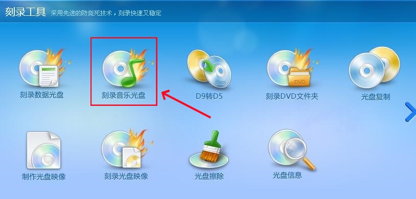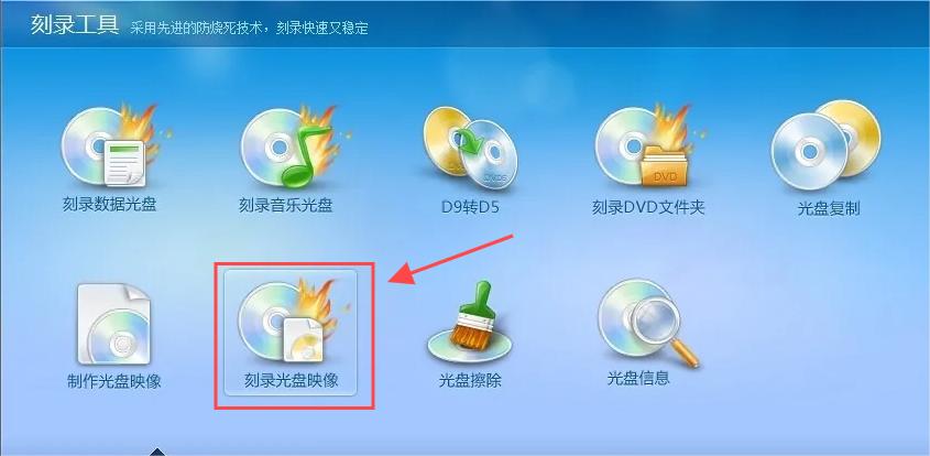 1.进入主界面后,您可以轻松选择以下几种常用的刻录功能:数据光盘、音乐光盘、光盘复制以及光盘映像制作。