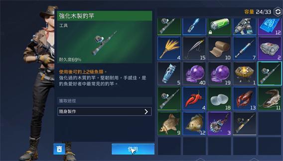 玩家们在游戏完成主线任务剧情当中可以看到相应的任务流程和有关的钓鱼系统的具体玩法。其中,想要解锁有关钓鱼系统玩法,需要先制作一个相应的鱼竿和诱饵,完成装备之后即可开启钓鱼操作了。在前期可以通过多多练习的方式来提升我们钓鱼的水平和操作实力,这样可以有效的提高我们的钓鱼效率和进展。