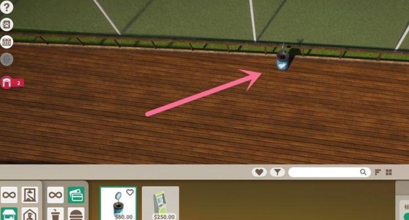 2、在设施面板左侧有一个菜单栏,直接在这里找出游客设施并点击打开它。