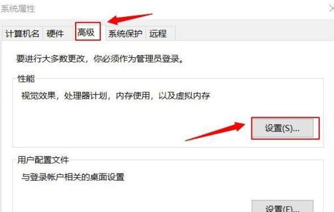 3、进入系统属性,点击--高级 再点击--设置