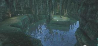 ⑥进洞之后,顺着路一直往下走,走到图中这个小河这里一直没有岔路,走到图中这个位置之后,拿神器走左边这条路。