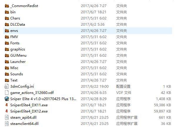 4、第四步 直接运行 SniperElite4_DX11.exe SniperElite4_DX12.exe(win10) 就可以进游戏了。