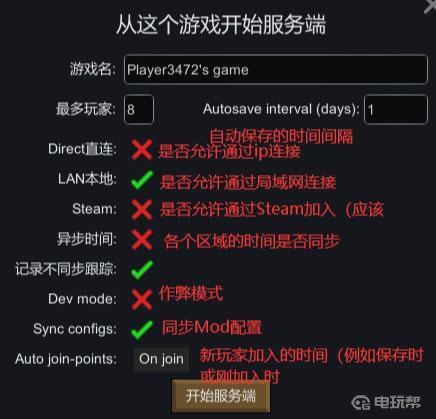 4.接着玩家需要建立主机,选择创建游戏、选择叙述者、生成地图。进入游戏后点击Esc,随后点击“开启服务端”按钮,对房间进行自定义。