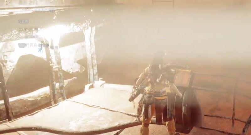2、先射击天线后面黄色梯子上的红锁,打开梯子后爬上去。
