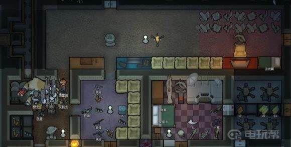 9,基地战斗区总览,可以看到普雷彻上方是没有门的,因为这样敌人的尸体可以直接挤进我们的战场打扫区,节省搬运的工作量。四门迫击炮常年吃灰,物品架占位防空投,同时防止迫击炮弹老化。通讯台不算生产设施,因此不影响贵族房间要求。工作间 集体宿舍谒见厅谒见厅屋顶分布。