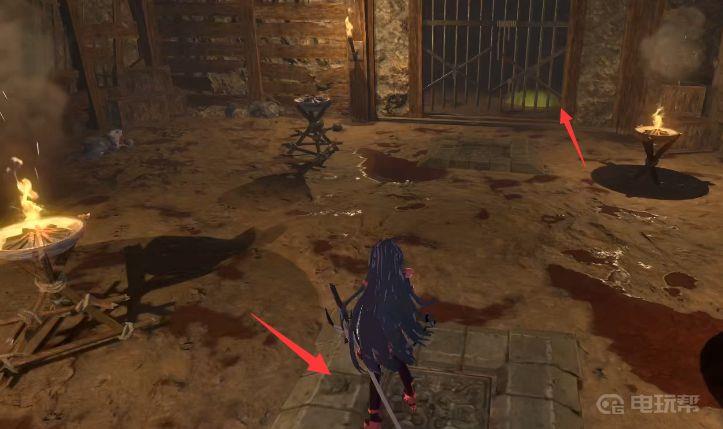 2.如图,站在地砖上,对面的铁门就打开了,然后去到另外一个地砖上