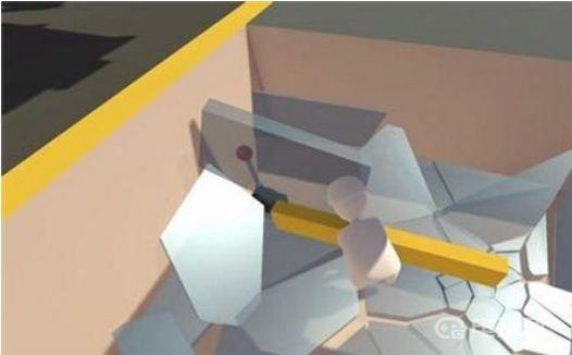 7、将操作杆向右侧拉,吊机吊臂会向右侧转动,铁球利用自重砸碎墙壁;