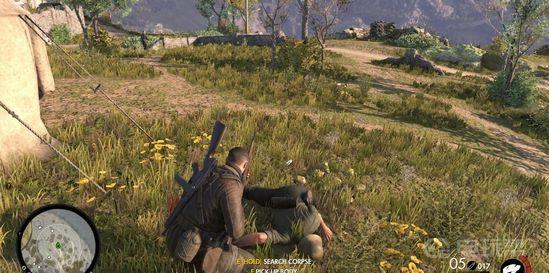 5、抵达刚才死亡的两个敌人处,按E能将尸体背起,按住E能将尸体丢弃。而对着尸体直接按E则能进行搜索。这里需要搜索一次尸体。