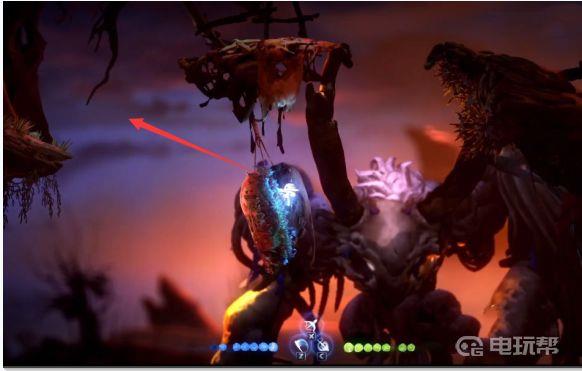 4、如图所示躲在这个悬挂物件后面,怪物向后看时往左上方逃跑。