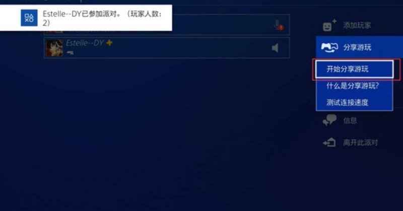 3.好友接受邀请进入派对,然后点击【分享游玩】-【开始分享游玩】