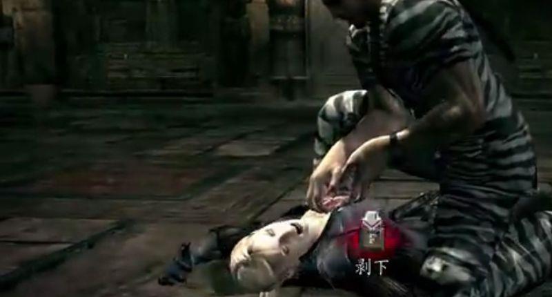 6、对吉尔进行压制后,按F键剥除吉尔胸前的生化装置,注意开始的时候吉尔会挣脱,吉尔起身后,再在她的脚边打一枪闪光弹,按照上面的操作再来几遍。