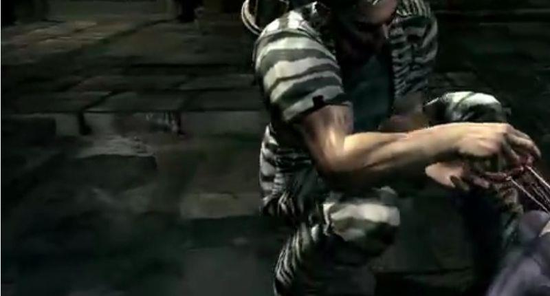 4、如果同伴在吉尔身后的话同伴会对她进行钳制,然后用手枪对着吉尔胸前的生化装置来一枪。