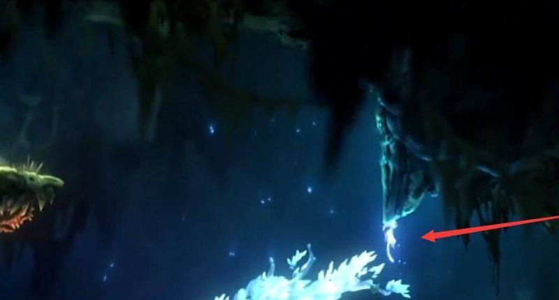 4、然后我们的人物就朝箭头指向的方向飞出去了,我们就成功使用了奥日猛击技能。(箭头的指向可以通过移动鼠标来调整方向)