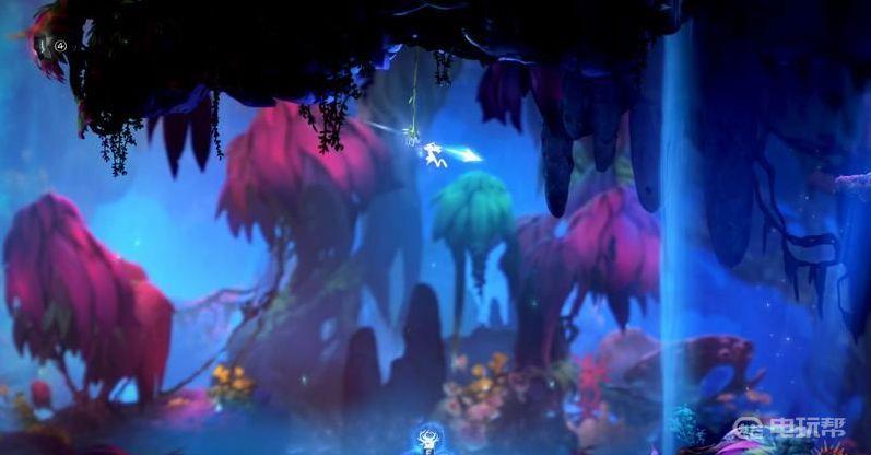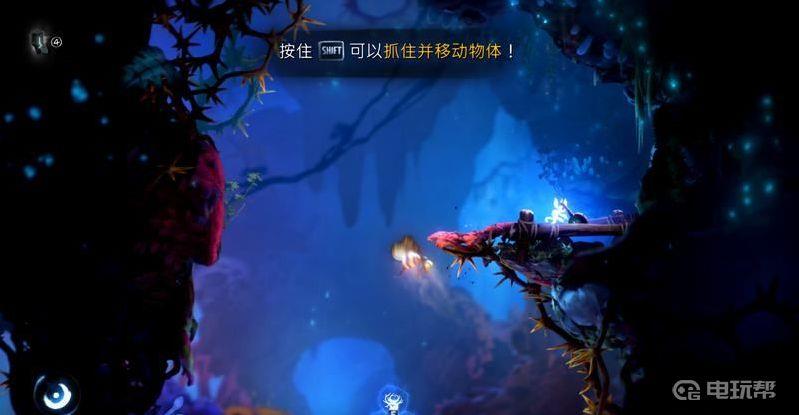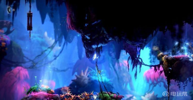 5、到达左上角场景后可以看到上面有一个“格勒克矿石”,如图利用气泡跳再弹跳可以捡到。