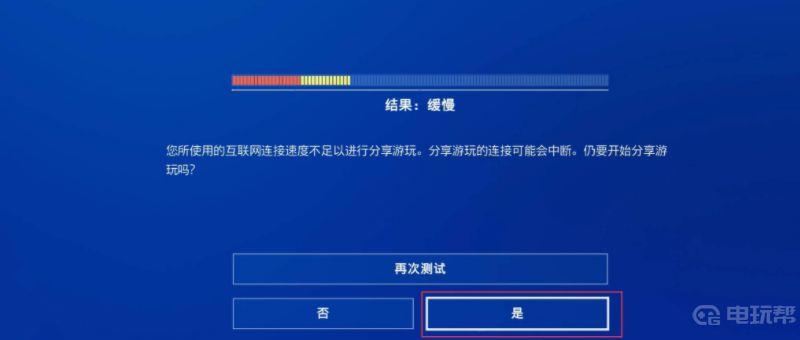 5.如果测试结果如图所示【非常缓慢】,则不能分享游玩