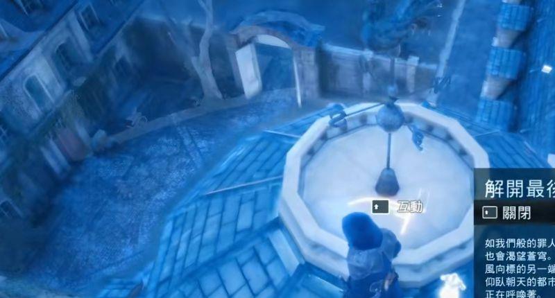 5、然后我们通过翻窗可以来到最外面,来到楼顶我们可以看见一个风向标,互动后我们的谜题就解开了。
