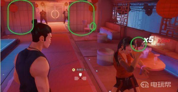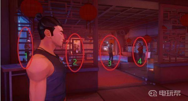 12、拿上酒瓶之后,向4号敌人投掷,可以偷袭处决。3号敌人和1号敌人会冲过来攻击,可以选择背靠4号敌人后面的阳台,在敌人露出破绽的时候将3号和1号敌人扔下阳台,地形杀。2号敌人会因为害怕不敢攻击,没什么收益,可以考虑饶她一命。