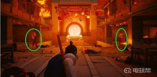 1、门口这两位是无辜的路人,没有经验也不加分,属于附加题。箭头处有一个落单敌人,处理掉之前可以利用其刷点分数倍数和专注值。