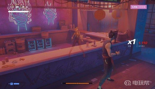 1、进入酒吧这里的打法也是一样,首先拿酒瓶砸一个小兵,上去将其处决掉。