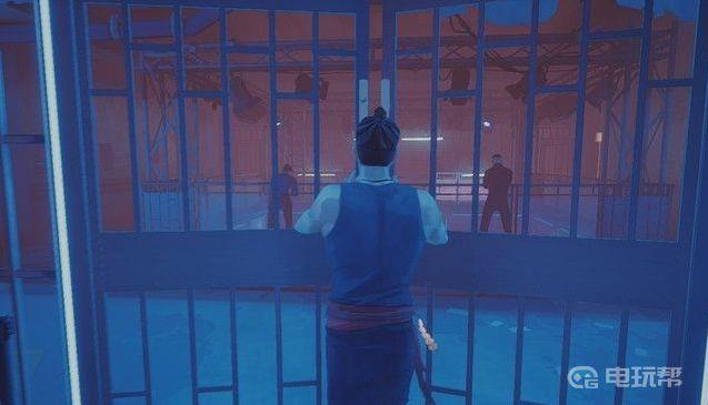4、开门去拳击台上方,这里遇到一些保安,场景中没桌子可翻,只能硬怼。站住按住空格防御闪避打法就行,一般下闪就行。注意,这里不要拿棍子打,棍子留着后面用。