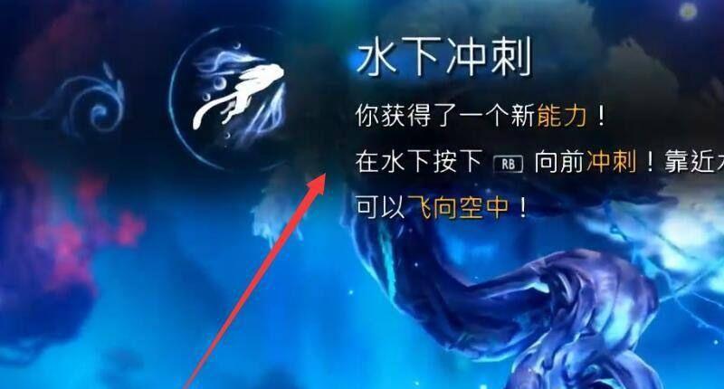 3、接着我们的人物就会吸收大树的光芒,然后我们就拿到并获得水下冲刺能力了,如下图所示: