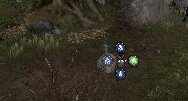 5、然后到河对岸就看到这把石中剑,点击选择出示藤蔓,即可获得藤丝