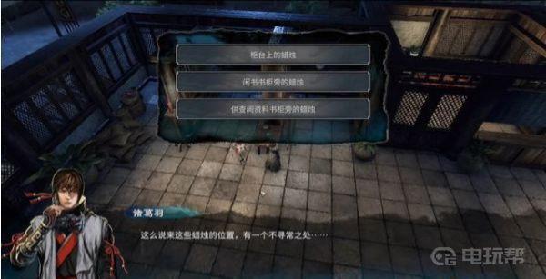 17、房间内的各个蜡烛,调查完后选【闲书书柜旁的蜡烛】。