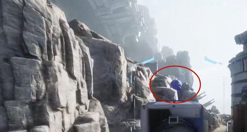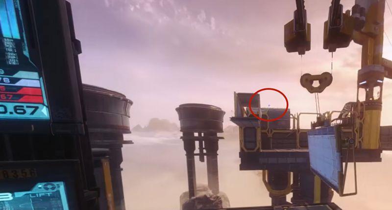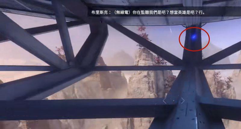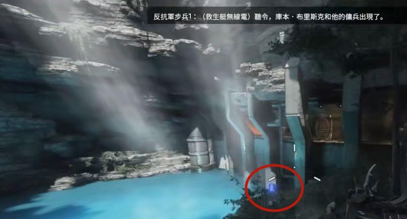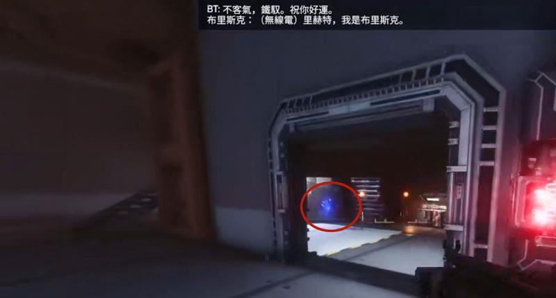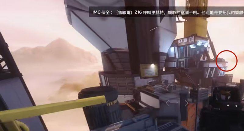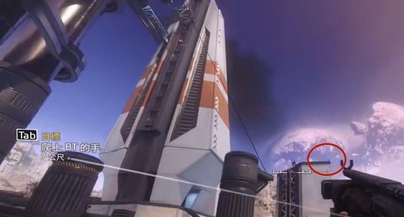 1、跟随友军泰坦进入设施后,在距离目标点大概440公尺左右位置的左侧高台上。