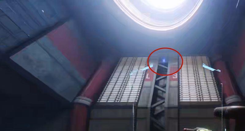 3、在最后BOSS战前的巨型粒子设备场景,在右侧顶端的管道上。