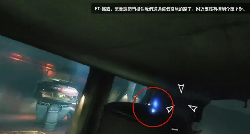1、经过带电弧的墙后,在下一个房间内右侧旋转管道上找到。